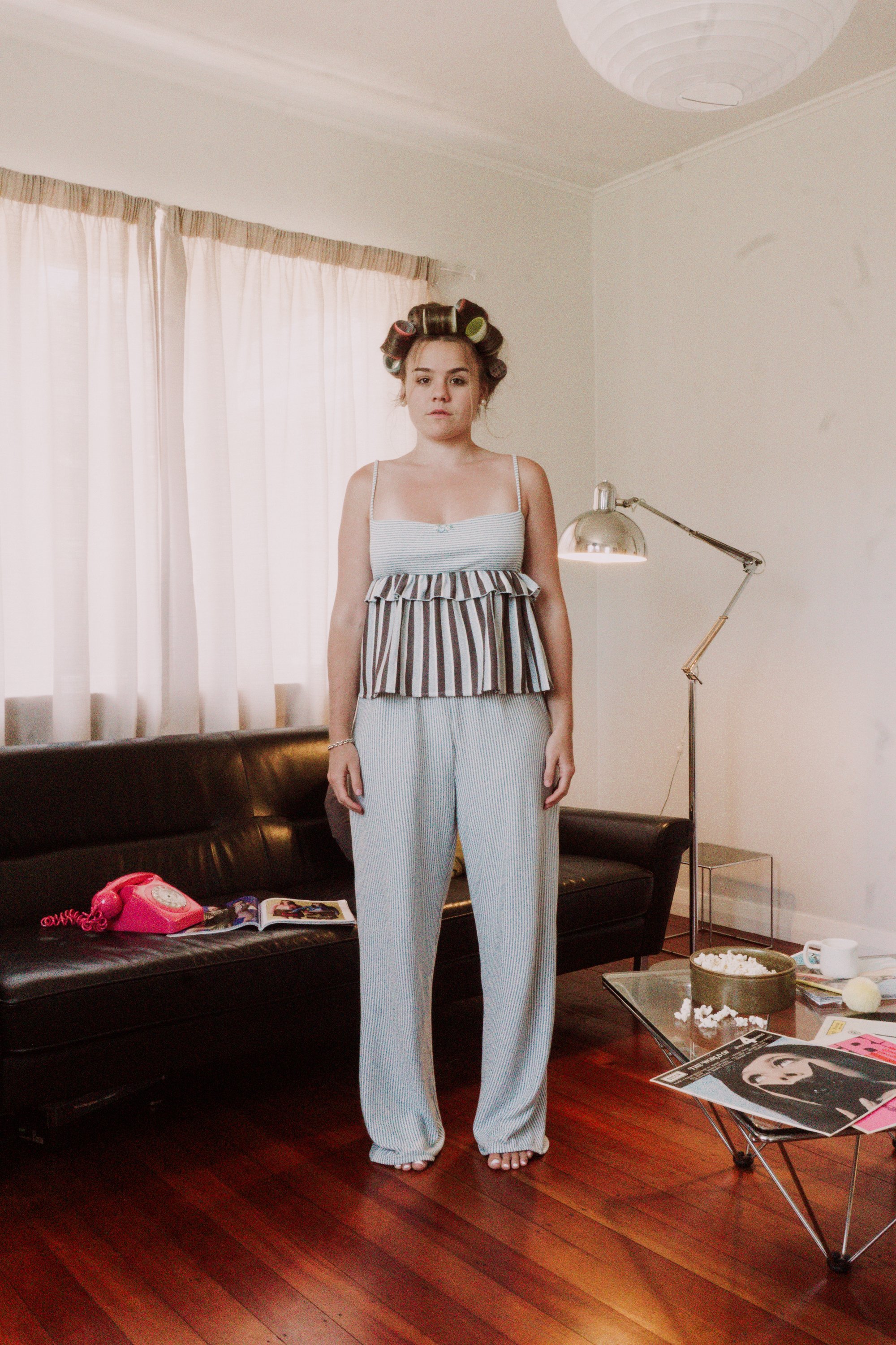 A thin blue & cream stripe pyjama pant, with a two-tone stripe pyjama top. This set is designed and made in NZ.